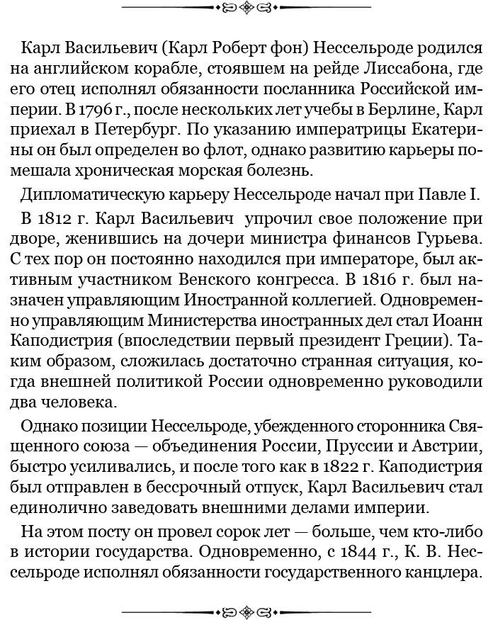 Граф Нессельроде прервал речь британского посла уверением, что со стороны нашего правительства не было и тени намерения оскорбить Францию и Англию. Дело при Синопе было неизбежным последствием положения, в которое мы были поставлены. Турки объявили нам войну и начали ее прежде назначенного ими времени; они же первые вторглись в наши владения и заняли пост, который удерживают доселе в своих руках, а между тем порицают нас за то, что мы отвечаем на их неприязненные действия такими же действиями. Наше нападение было делом собственной защиты: турецкие суда, несомненно, были нагружены военными припасами для снабжения племен, враждебных нам.