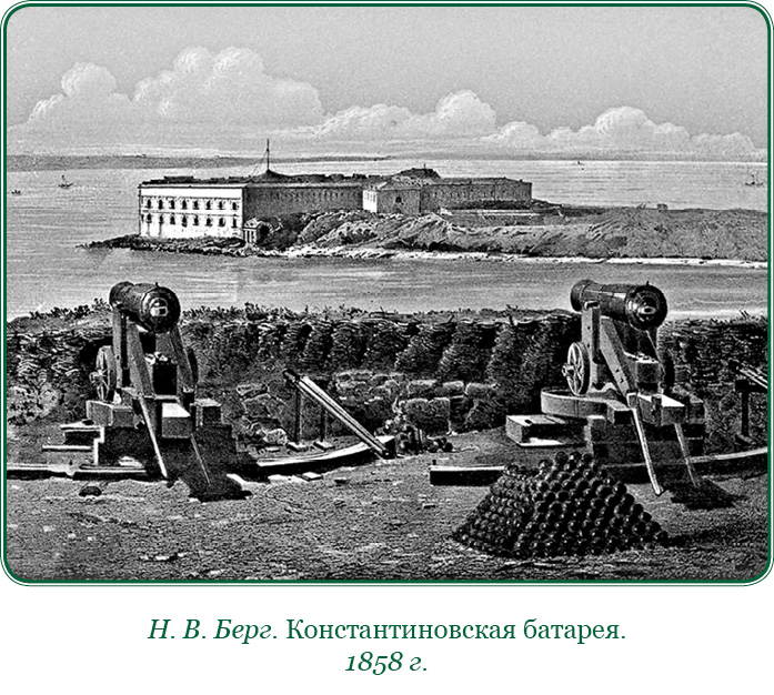 При таком устройстве береговой обороны неприятельский флот, покусившийся вторгнуться на рейд, был бы встречен в 1200 саженях от входа в бухту выстрелами четырех бомбовых пушек батареи № 10 и Александровского, а на расстоянии 800 саж. от входа подвергался действию 80 орудий, именно: батареи № 10, головных орудий Александровской и Константиновской батарей и двух бомбовых орудий батареи № 8; по мере приближения неприятеля ко входу на рейд он мог быть поражаем в расстоянии 400 саж. огнем из 146 орудий батареи № 8, 7-го бастиона и батарей Михайловской и Николаевской, а в расстоянии 200 саж. от входа – встречными, перекрестными и тыльными выстрелами более 200 орудий с береговых батарей, в особенности же № 8-го, Михайловской и Николаевской.