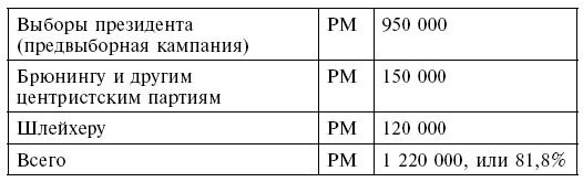 Размеры финансовых политических взносов промышленников точно установить невозможно. Пожалуй, никто в мире не решится утверждать, что пожертвования в поддержку избирательной кампании того или иного политика являются открытыми и честными. Субсидии могли предоставляться, например, в виде оплаты места для пропаганды в печатном органе данной политической партии, что стоило больших денег. Это могла быть финансовая помощь в создании партии, причем настолько щедрая, что позволяла и создать партию, и провести избирательную кампанию. В бухгалтерских книгах доноров эти взносы могли быть отражены просто как не облагаемая налогом благотворительная помощь.
