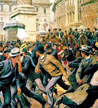 Социалисты и коммунисты создали свои отряды «народных смельчаков», которые оказывали сопротивление фашистским бандам. Однако силы сторонников Муссолини были гораздо мощнее. Антифашистская забастовка в 1922 г. не удалась – «чернорубашечники» разгромили пикеты забастовщиков.