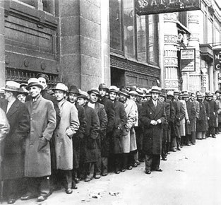 В середине 1929 г. мировая капиталистическая экономика казалась стабильной и процветающей. Но в октябре 1929 г. рухнул финансовый рынок США. За короткое время закрылось более 5 тыс. американских банков, полностью обесценились акции на 40 млрд долларов, миллионы вкладчиков во всём мире потеряли свои деньги. Лишившись американских капиталовложений, экономика стран Запада стала разрушаться. Промышленное производство в США сократилось почти вдвое, а производство автомобилей – почти в пять раз. Значительно сократилось производство и в других странах. Миллионы людей лишились работы. Начался величайший кризис мировой экономики XX в., получивший название Великой депрессии.