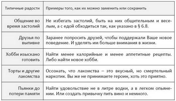 Эти «Заменители» позволят Вам сохранить увлечения, общение, друзей и другие удовольствия. Но окончательно побороть боязнь нового образа жизни Вы сможете лишь тогда, когда научитесь считать еду не радостью, а потребностью.