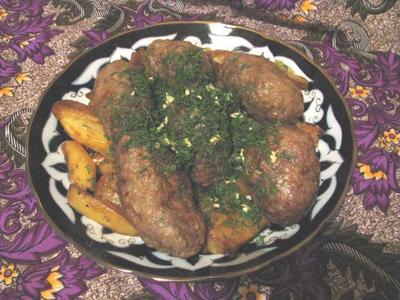 Первый вариант, относящийся к шашлыкам, мы ещё успеем обсудить в следующей главе. Здесь же, я хочу привести рецепт приготовления кўфта-кабоба в квартирных условиях (в казане), который несравненно более выгоден с точки зрения экономной хозяйки. Он обладает, помимо прочего, ещё и достоинствами эстетического порядка: выложенное на широкий плоский табак и обильно присыпанное ароматной зеленью сверху готовое блюдо, красиво и очень эффектно смотрится, провоцируя гостей на облизывание, причмокивание и желание поскорей сесть за стол. Таким образом, завершив первую главу, связанную с приготовлением мяса в казане, мы как бы плавно перейдем ко второй, где речь пойдет уже о шашлыках, мангале, тандыре и духовке.