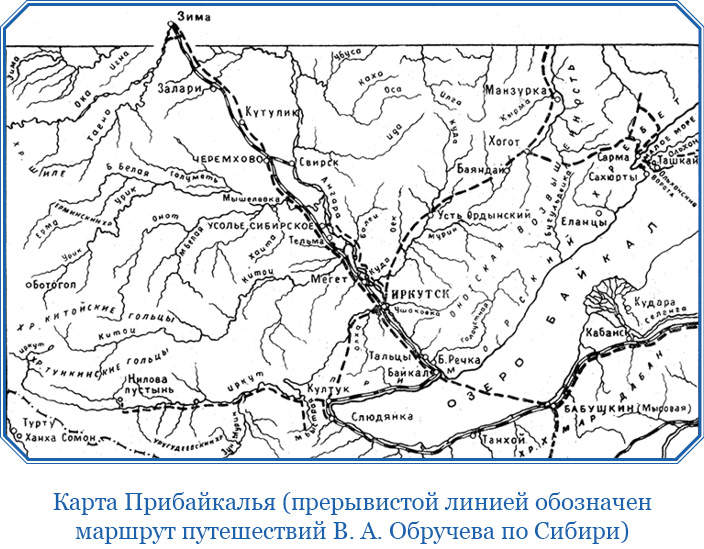 Выше этого прииска долина р. Бодайбо тянется еще довольно далеко, но действующих приисков здесь не было; кое-где в долинах притоков реки когда-то производились разведки, кое-где углублялись шахты, но они были уже недоступны. Поэтому я перебрался в так называемую дальнюю тайгу, т. е. за водораздел, отделяющий правые притоки р. Витима – Бодайбо, Энгажимо, Тахтыгу – от бассейна р. Олекмы, где в бассейне р. Жуи работалось несколько приисков Ленского товарищества и имелись также прииски более мелких золотопромышленников, как в бассейне р. Жуи, так и по непосредственным притокам р. Лены – рекам Малому Патому, Молво и др. По дороге туда я осмотрел попутные обнажения коренных пород в хребте Кропоткина и остановился на Тихонозадонском прииске Ленского товарищества, расположенном в долине р. Ныгри, левого притока р. Вачи, впадающей в р. Жую. Здесь мне опять предоставляли экипаж для объезда и осмотра действующих приисков товарищества и его соседей, а также лошадей с конюхом – для более далеких экскурсий.