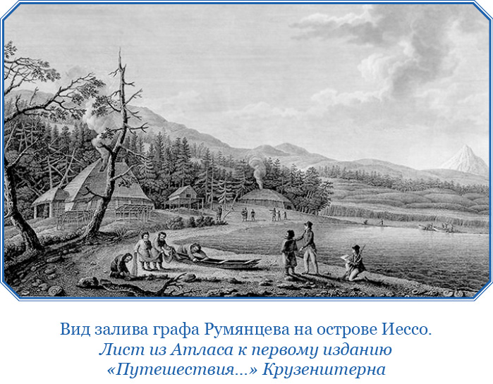 Поздняя весна на северной оконечности Иессо. – Пребывание на оной японского офицера с несколькими купцами. – Известия о землеописании сей страны. – О названиях Иессо, Ока-Иессо, Инзу, Матсумай и Сахалин. – Описание залива Румянцева. – Пик де Лангль. – Плавание в залив Аниву. – Стояние на якоре в заливе Лососей. – Японские фактории в Аниве. – Мнение об удобном заведении здесь селения купечествующими европейцами. – Выгоды, могущие произойти от того для торговли. – Овладение Анивою не может быть сопряжено с опасностью. – Оправдание всех мер, кажущихся насильственными. – Описание айнов. Физическое их состояние и душевные свойства. – Нравственность женщин. – Одеяние, украшения, жилища, домашние вещи. – Образ правления. – Число народа. – Примечание о мохнатости айнов.