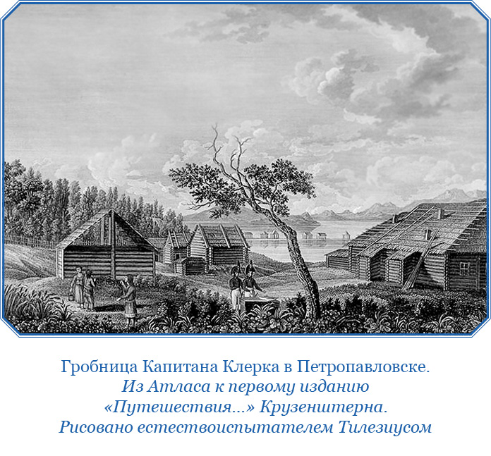 Августа 29-го в 8 часов вечера вошли мы наконец в губу Авачинскую и следующего дня в 3 часа пополудни стали на якорь в Петропавловском порте, находившись в отбытии из оного ровно 2 месяца. Во все сие время редко случались дни, в которые бы не мочил нас дождь или не проницала бы платья нашего туманная влага; сверх того, не имели мы никакой свежей провизии, выключая рыбы залива Надежды, и никаких противоцынготных средств; но, невзирая на все то, не было у нас на корабле ни одного больного.