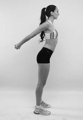 Привстаньте на переднюю часть стопы и, подняв руки вверх, максимально вытянитесь. Удерживайте достигнутое положение в течение 5-10 секунд.
