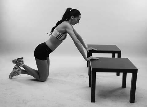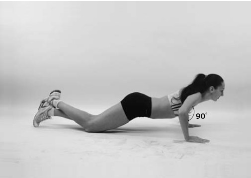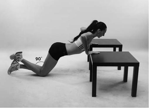 Руки выпрямлены и расположены на опорах, на расстоянии 65–75 см друг от друга, пальцы смотрят вперед. Колени расположены на таком расстоянии от опор, чтобы в завершающей фазе упражнения угол в коленных суставах был не меньше 90°.