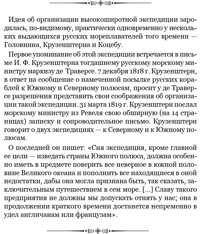 В сию ночь мы несли довольно парусов по причине тихого ветра, равно и потому, что не встретили ни одного ледяного острова. Во время темноты ночной видели светящуюся поверхность моря, чего в больших широтах не видали, потому что светящиеся морские животные не переходят далее известного им предела. Вероятно, есть степень холода, которой они сносить не могут, подобно всему, что имеет жизненность на обитаемом нами шаре.