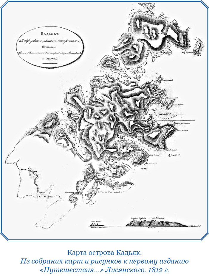 С одного из близлежащих островов мы услышали голоса и крики людей и увидели разведенный там костер. Вскоре показались две небольшие байдарки, сделанные из тюленьих шкур. В каждой байдарке сидело по одному человеку, которые подплыли к самому судну на расстояние от пятнадцати до двадцати саженей.
