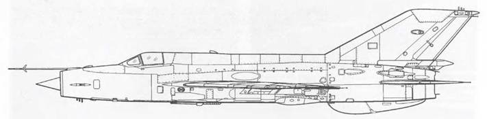 Уже в процессе строевой эксплуатации на части МиГ-21СМ и МиГ-21М были поставлены гилыоотражатели. Позже они стали стандартными для МиГ-21МФ.