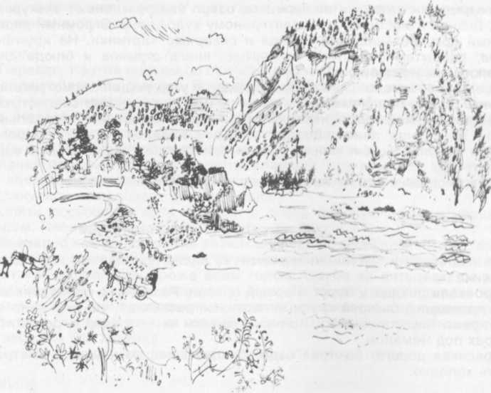 Проехали двадцать верст. Первый привал. Разговор с проводником. Наш проводник, бывший красный партизан, рассказал, что еще некоторое время после разгрома Колчака остатки его отрядов укрывались в горах под Чемалом.