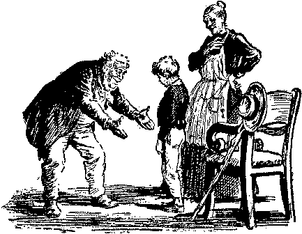 — Вот он едет! Нагни голову пониже, вот так — теперь хорошо. Сиди и не пикни, что ты тут. Я над ним подшучу… Дети, и вы тоже молчите.