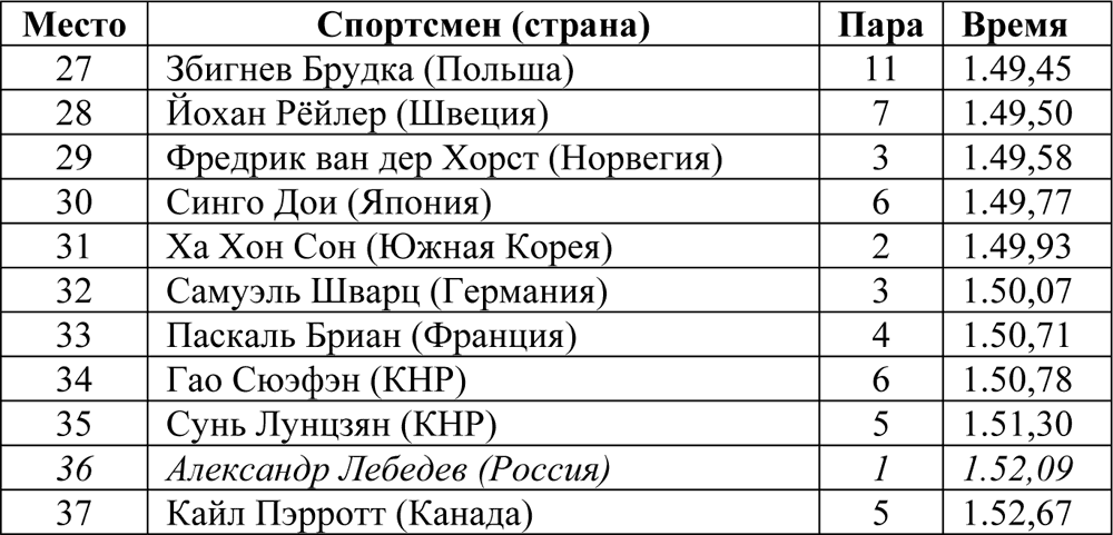 В пятом забеге серебряный призёр Ванкувера на дистанции 5000 м 21-летний кореец Ли Сын Хун установил новый олимпийский рекорд – 12.58,55.