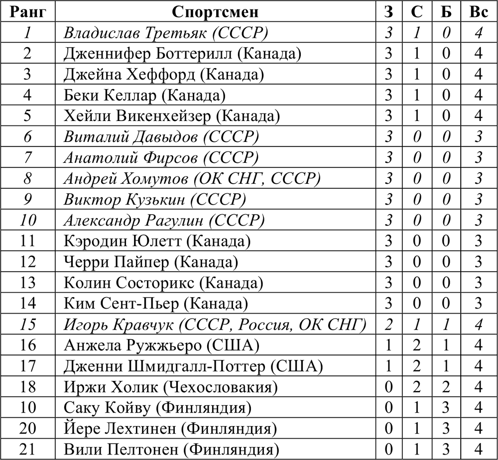 Спортсмены и медали 1920–2010 (не менее 3 золотых или 4 медали в целом)