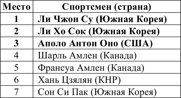 Американец Аполо Антон Оно выиграл 3 медали (серебро и 2 бронзы) и довёл число своих олимпийских наград за карьеру до 8 (рекорд среди шорт-трекистов).