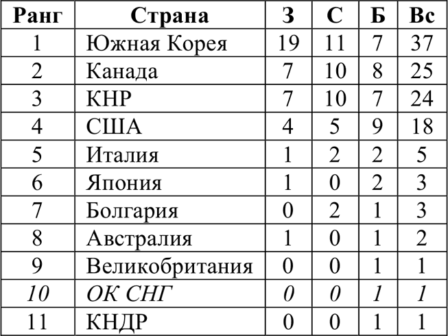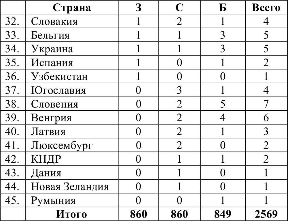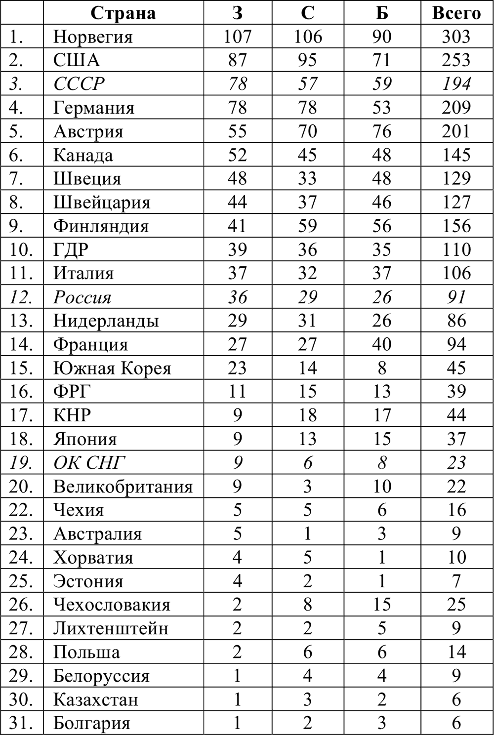 ОБЩЕЕ РАСПРЕДЕЛЕНИЕ МЕДАЛЕЙ ЗИМНИХ ОЛИМПИЙСКИХ ИГР ПО СТРАНАМ-УЧАСТНИКАМ (1924–2010)