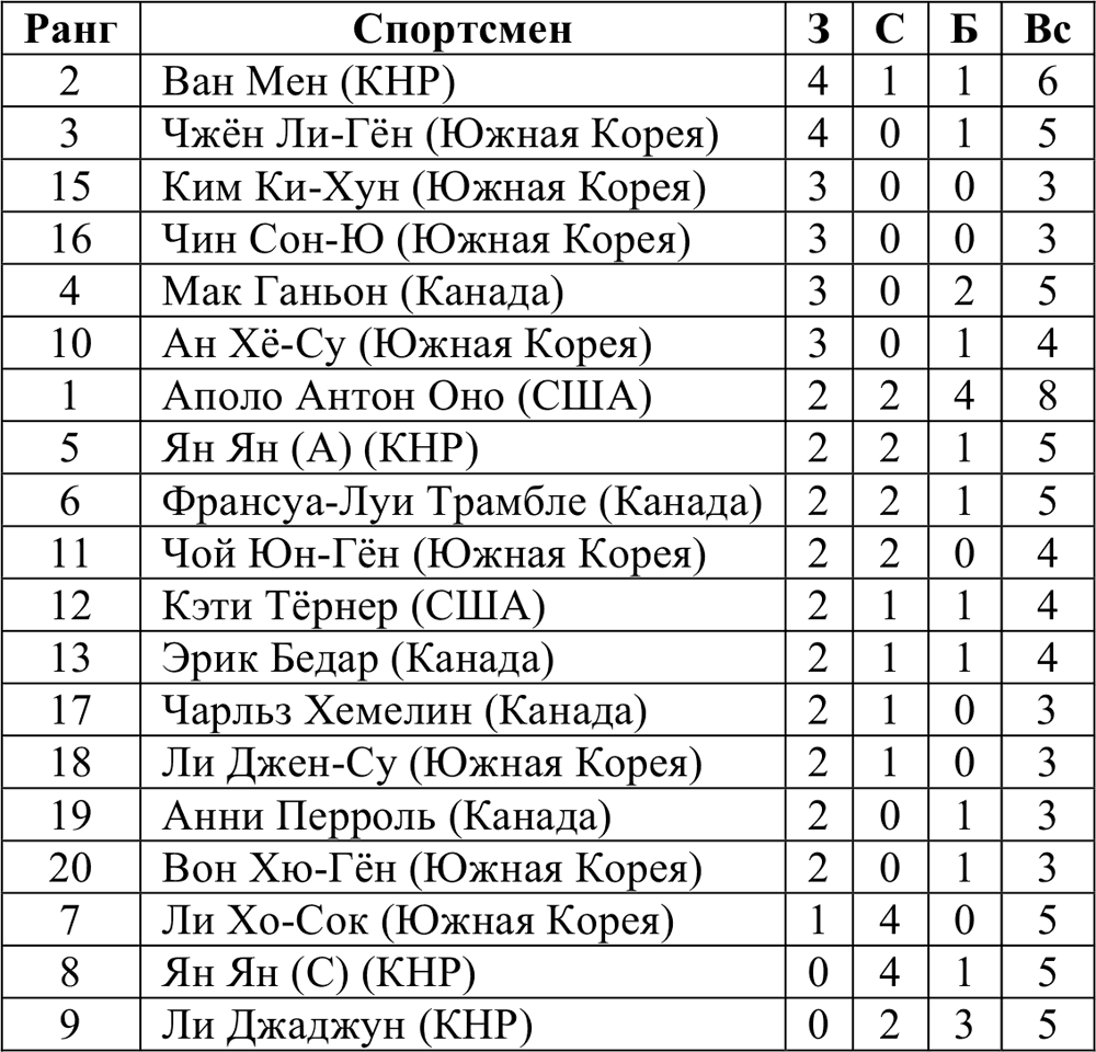 Спортсмены и медали 1992–2010 (не менее 2 золотых или 5 медалей в целом)