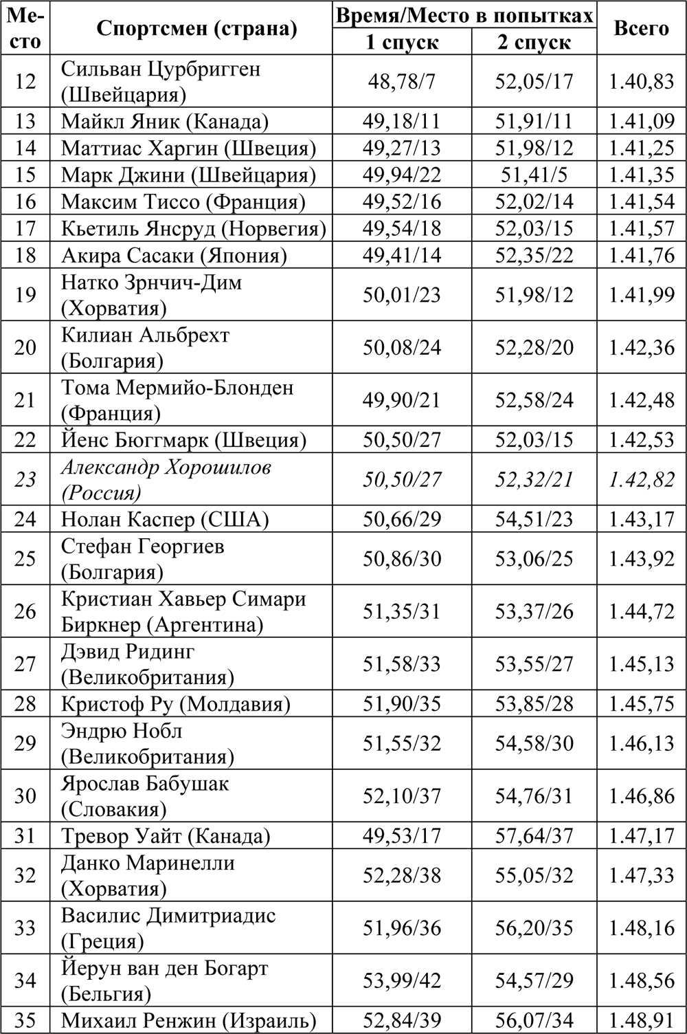 Хорват Ивица Костелич выиграл свою третью серебряную олимпийскую медаль за карьеру и вторую – в Ванкувере. На счету Яницы и Ивицы Костеличей стало девять олимпийских медалей: четыре золотых и пять серебряных. Кроме этих девяти наград Хорватия выиграла во всех видах спорта на зимних Олимпиадах лишь одну бронзу.