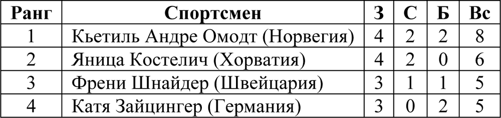 Спортсмены и медали 1924–2010 (не менее 3 золотых или 4 медали в целом)