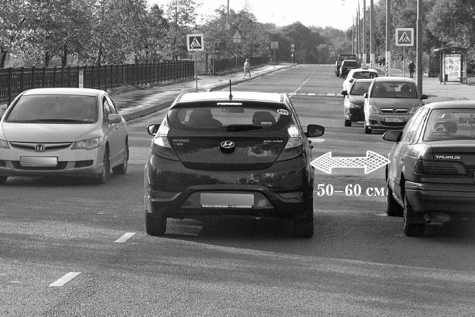 Фото 29. Безопасный интервал между объезжаемыми автомобилями 50–60 см