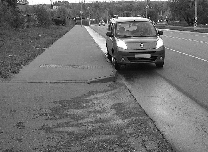 Фото 33. Распространенная ошибка – остановка после перехода правильна, но между сплошной линией и автомобилем расстояние менее 3 м