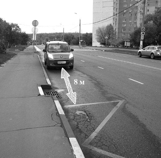 Некоторые, особо дотошные инспекторы могут и замерить расстояние, но если расстояние явно менее 10 метров, то тут и замерять не надо, получите 3 штрафных балла (на фото 32 расстояние 8 м).