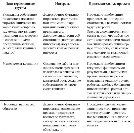 Интересы кредиторов и их специфичное влияние на инвестиционные решения компании будут рассмотрены ниже.