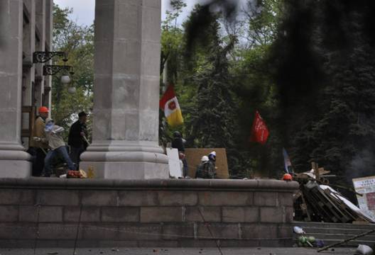Рассказывает Андрей: «Когда я увидел из одного из взломанных кабинетов, этих неадекватных людей с украинскими флагами, увидел как они ломают наши, так называемые, баррикады, наш палаточный городок — я выбежал из этого кабинета и побежал через правое крыло, на верхние этажи. По дороге я слышал, как начали кричать, что видели у «майдановцев» «коктейли Молотова» и что они сейчас начнут палить.