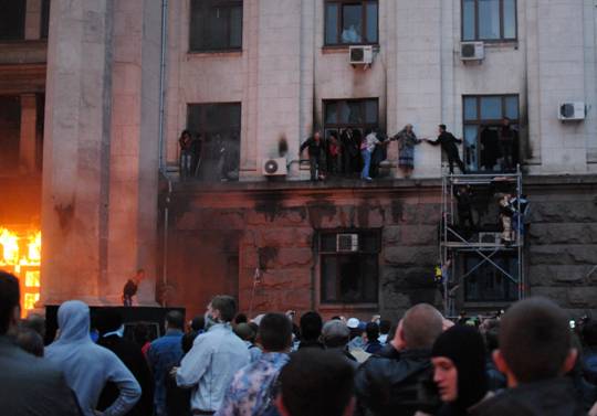 Куликовцы спасаются из горящего здания, но спасшихся в особенности мужчин жестоко избивают. Не всем удается спастись от озверевших майдановцев