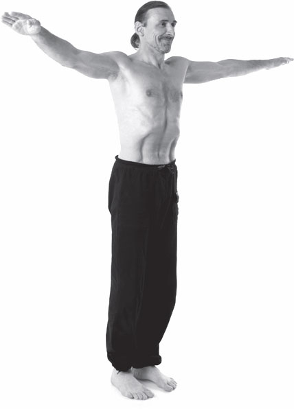 1. Исходное положение: встаньте прямо, ноги вместе, руки свободно опустите вдоль туловища. Расслабьте мышцы, не участвующие в поддержании позы так, чтобы почувствовать вялость во всем теле. Медленно выпустите воздух через нос, одновременно как можно сильнее втягивая живот, чтобы сделать выдох полным.