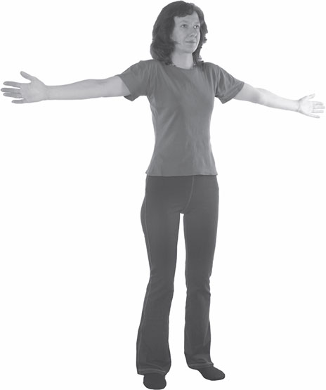 5. Продолжая вдох, разведите руки в стороны параллельно полу, так, чтобы ладони были раскрыты и обращены вперед. Одновременно продолжайте распрямлять колени, чтобы они распрямились полностью.