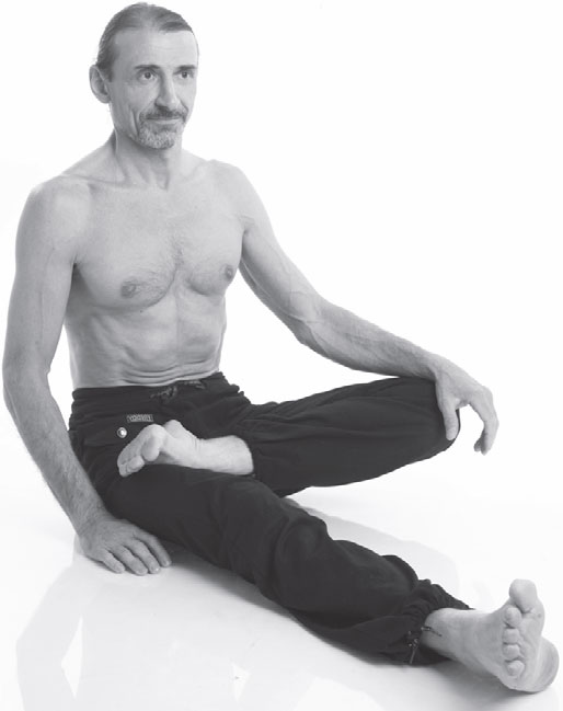 3. Положите левую стопу на правое бедро. Предплечье или кисть левой руки положите на левое колено.