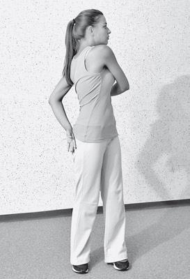 Особенности выполнения упражнения: в течение 10 секунд вы пытаетесь разогнуть шею и сопротивляетесь этому рукой на затылке. Далее этой же рукой наклоняете вперед голову и шею к подбородку. РАСТЯЖЕНИЕ задних мышц шеи.