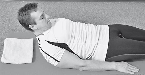 8. «Наклон шеи в сторону лежа с помощью руки». ИП: лежа на спине, кисть одной руки располагается на одноименном виске. Степень сложности: СРЕДНЯЯ.