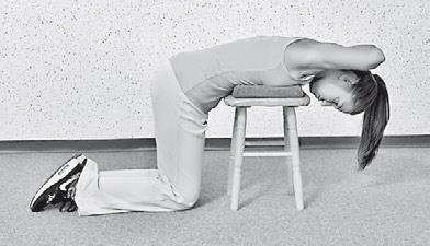 62. «Растяжение шеи на табурете». ИП: лежа на табурете лицом вниз. Руки ладонями на полу. Степень сложности: ЛЕГКАЯ.