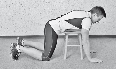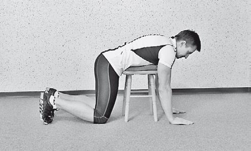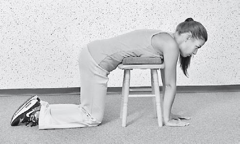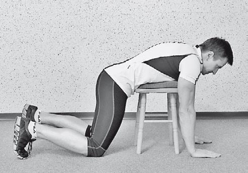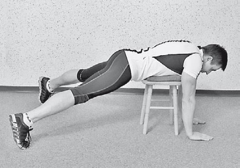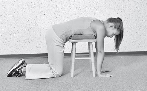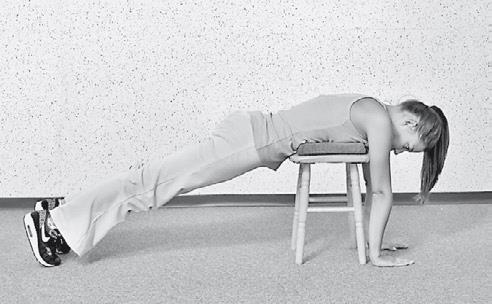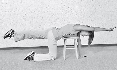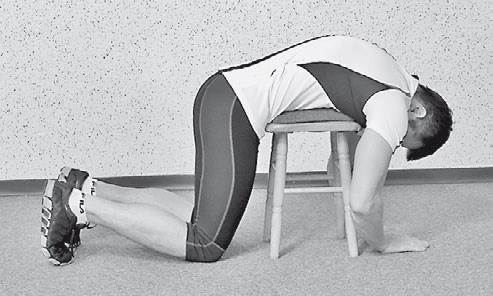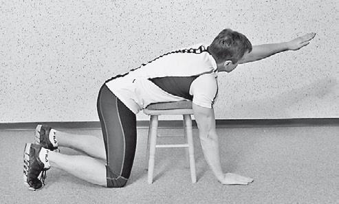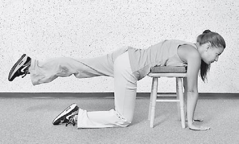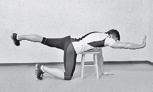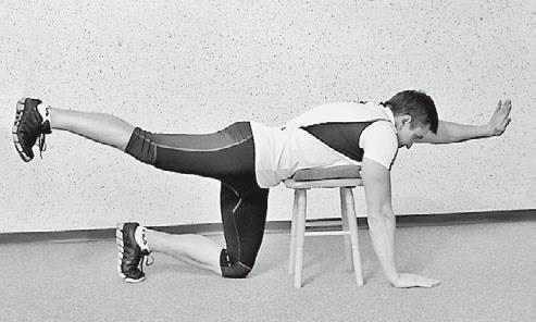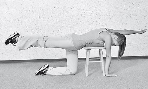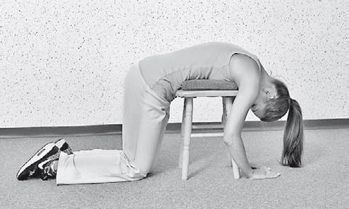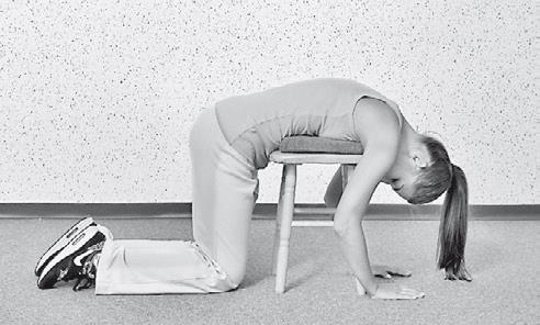69. «Усложненная растяжка позвоночника на табурете после нагрузки рукой и ногой». ИП: лежа на табурете лицом вниз. Руки и ноги располагаются на полу. Степень сложности: ВЫСОКАЯ.