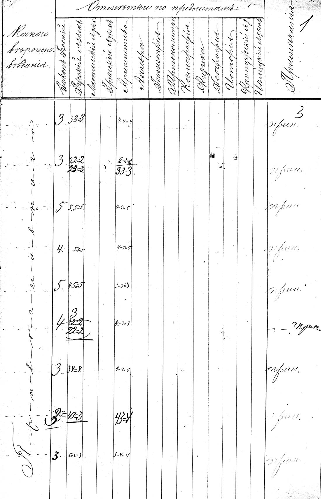 2-й внутренний лист приемного журнала учеников Архангельской губернской гимназии. 1894 г. (ГААО. Ф. 127. Оп. 1. Д. 554. Л. 3)
