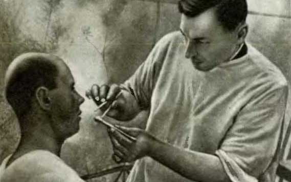 Свентицкий осушает салфетками кровоточащие участки раны. Надо делать это мгновенно, чтобы видны были ткани в тот короткий момент, пока кровь еще не успела снова выступить на них. Свентицкий, мне кажется, держит салфетку вдвое дольше, чем нужно, и отнимает ее не отрывистым, а округлым и плавным, изящным движением.
