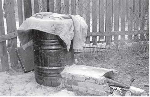 Для того чтобы соорудить коптильню для сала самому, нужно найти 200-литровую железную бочку без крышки и без дна. То есть нужен обыкновенный железный цилиндр, по габаритным размерам приблизительно равный железной 200-литровой бочке. Для установки коптильни своими руками надо вначале выбрать место, где будет установлена бочка. Затем выкопать канаву длиной до полутора метров, глубиной 30 см и шириной 20 см, накрыть ее железным листом и присыпать слегка землей. С одного конца канавы установить бочку дном вниз, а с другого нужно углубить яму для устройства топки.