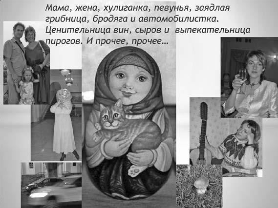 А еще мама, жена, хулиганка, певунья, заядлая грибница, бродяга и автомобилистка. Ценительница вин, сыров и выпекательница пирогов. И прочее, прочее…