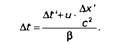 Для системы G положение хронометра (х) – то есть центр координат системы D – движется направо с постоянной скоростью, отсюда: х = u • t. Для t' получим: