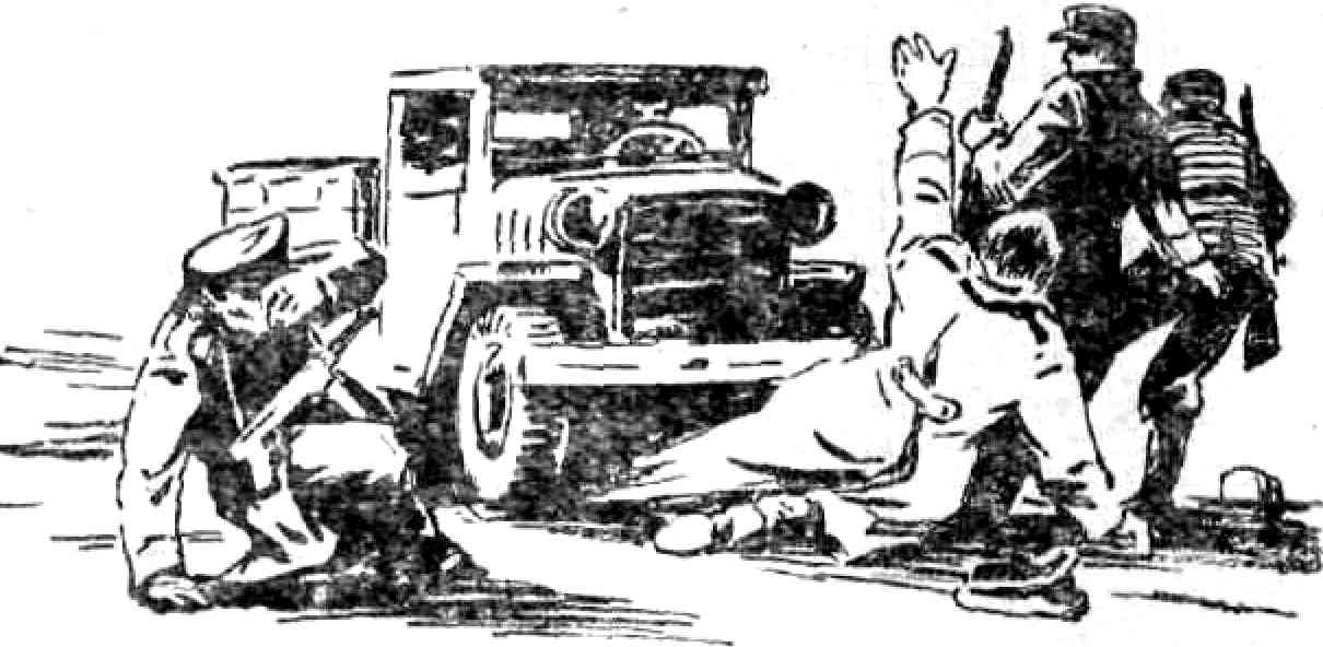 Стремительный бросок из машины из-за крутого поворота не был замечен полицейскими. Выскочив на прямую улицу, по которой мчалась машина Ящука, преследователи прибавили газа. Семьдесят… Восемьдесят… Девяносто километров. Стрелка спидометра легла на цифру «100». Беглец уже близко. Теперь не уйдет! Вдруг раздался сильный скрежет тормозов. Преследователи сходу врезались в кузов вилявшего «газика». Мотоцикл отлетел далеко в сторону… «Ага!» — ликовал Ящук. Машина снова взяла стремительный разбег.