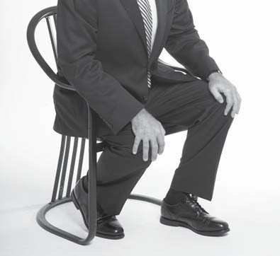 Рис. 19. Обхват ладонями коленей и перенос центра тяжести на ноги — это показатель намерения, выражающий желание человека встать и уйти.
