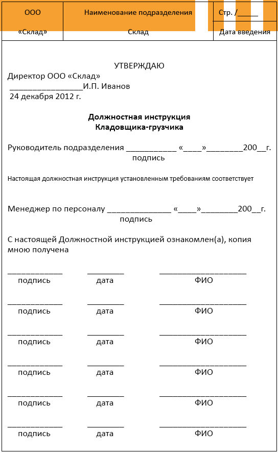 Для любого руководителя очень важно уметь составлять простые, ясные и удобные в работе должностные инструкции. При этом составителю надо постараться избежать всякого рода формализма. Ниже приведены должностные инструкции трёх типов работников компании, связанные со складской логистикой (специалист, старший специалист и линейный руководитель).