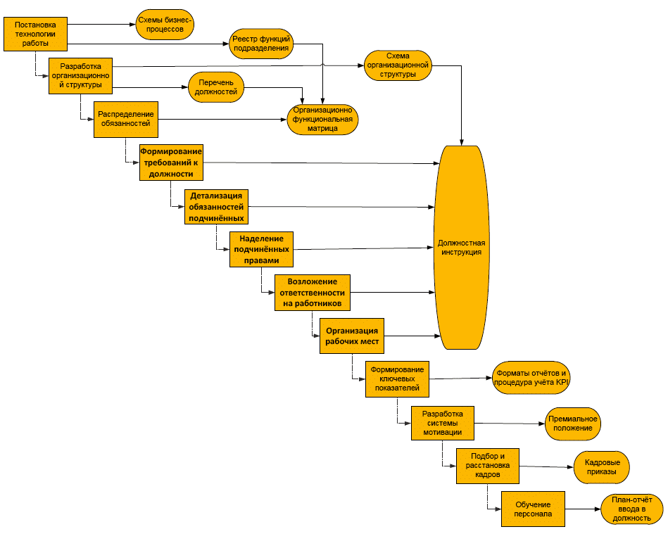 При формировании нового подразделения, скорее всего, всю работу, связанную с организацией деятельности, вам придётся делать с нуля. Описывать технологию, выстраивать организационную структуру, разрабатывать должностные инструкции, ключевые показатели и мотивацию, подбирать и обучать персонал. Но организация нового подразделения происходит очень редко.