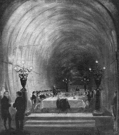 Банкет был устроен сыном Марка Брюнеля, Изамбардом Кингдомом Брюнелем, с целью убедить публику в надежности конструкции тоннеля после трагических инцидентов в начале того же года.