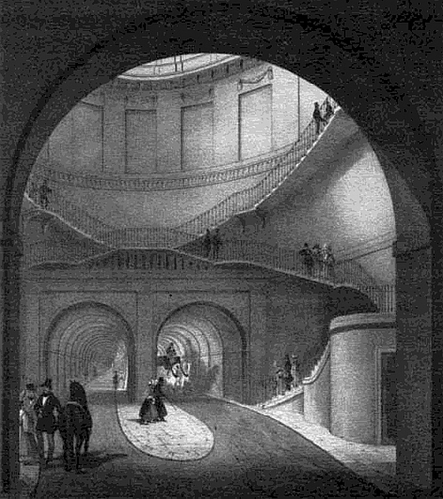 И тем не менее энтузиазм освоения подземного мира не утихал. Середина XIX века была эпохой героического материализма; герцог Веллингтон описывал проект Брюнеля как «величайшее произведение искусства в истории человечества». Этот первый подводный тоннель современного мира был закончен весной 1840 года, а открывала его королева Виктория в начале 1843 года. Несколько лет он считался одним из чудес света. Но триумф оказался недолгим. Единственным способом попасть и выйти из тоннеля были вертикальные шахты по обоим берегам Темзы. Не было предусмотрено никакой возможности для движения транспорта.
