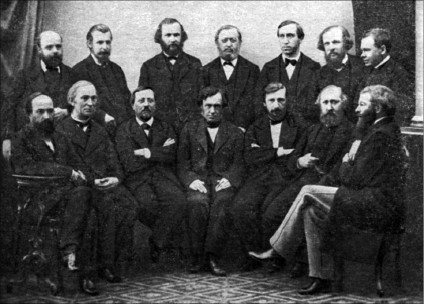 Профессора физико-математического факультета Петербургского университета. Сидят (слева направо): А. В. Советов, П. Л. Чебышев, К. Ф. Кесслер, А. Н. Савич, П. А. Пузыревский, Ф. В. Овсянников, А. Н. Бекетов; стоят (слева направо): Р. Э. Ленц, Н. А. Меншуткин, А. С. Фаминцын, И. И. Сомов, Ф. Ф. Петрушевский, Д. И. Менделеев, А. Н. Коркин