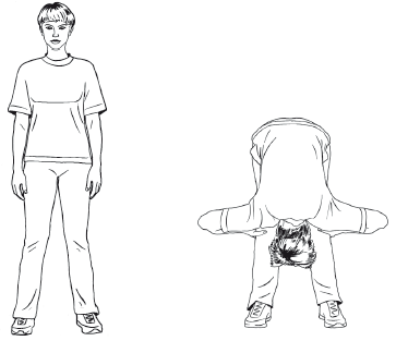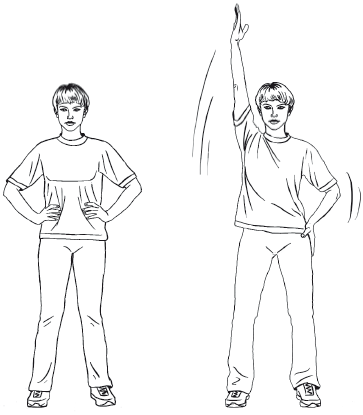 Исходное положение: станьте прямо, ноги на ширине плеч, руки расположены на поясе или свободно опущены вдоль туловища.